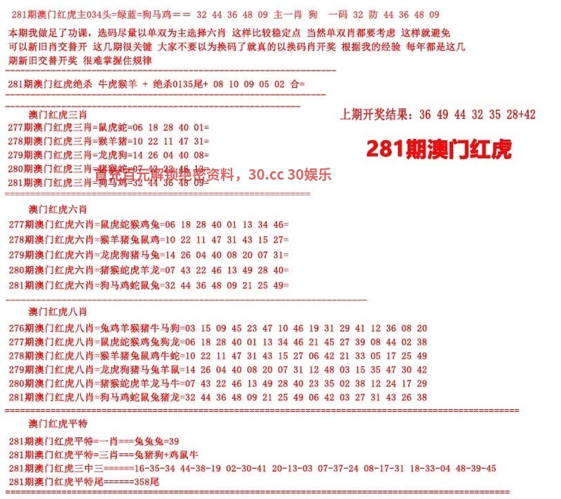 281期:【马羊蛇龙猴狗兔猪鸡】开:羊47准 |